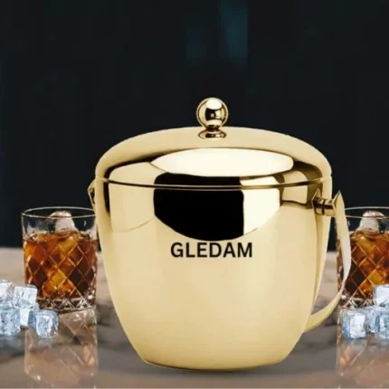 GLEDAM Gold 1.6 Litre Matte Finish Stainless Steel Double Insulation Ice Bucket with Tong | Gift Items| Home Decor | Ice Box | Bar Accessories for Home and Party: (1.6 Litre)1 Pc Each