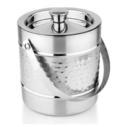 GLEDAM Anti Rust Stainless Steel Ice Bucket I Double Wall Centre Half Hammered Design SilverI Premium Glossy I Food Grade Steel with Ice Tong :1 Pc Each (1.5 Litre)