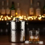 GLEDAM Full Hammered1.5 Litre Premium Stainless Steel Ice Bucket – Designed with double-walled insulation, this ice bucket keeps ice colder for longer while preventing condensation. Crafted from high-quality stainless steel with a sleek finish, it combines durability with modern elegance. Easy to clean and maintain, it features a non-slip base for stability and a generous 1.5 Litre capacity, making it perfect for parties, home bars, and gatherings. Proudly Made in India, this ice bucket adds a touch of luxury to any occasion.